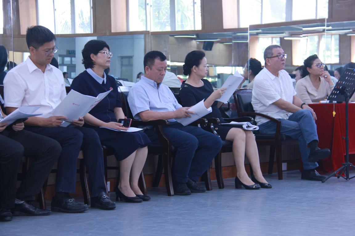 尽管烈日当空,领导们仍然惦记着正在排练中的师生。师生以铿锵有力的掌声欢迎领导的到来并热情地接待了各位领导。紧接着便是歌剧《五星红旗》的排练,《五星红旗》是时时彩
