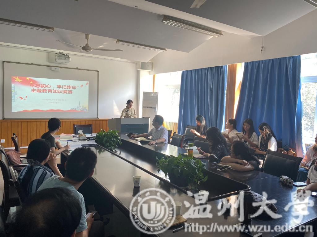 “不忘初心、牢记使命”主题教育的开展情况,并对上一阶段主题教育学习做总结,并推进下一阶段的主题教育内容。朱书记强调各支部依然围绕“守初心、担使命、找差距、抓落实”开展线上线下学习,用自身专业开展相关特色党建活动,互相督促、互相学习。另外就“不忘初心、牢记使命”主题教育应知应会内容开展了主题教育知识竞答,进一步加深学习了主题教育的相关内容。