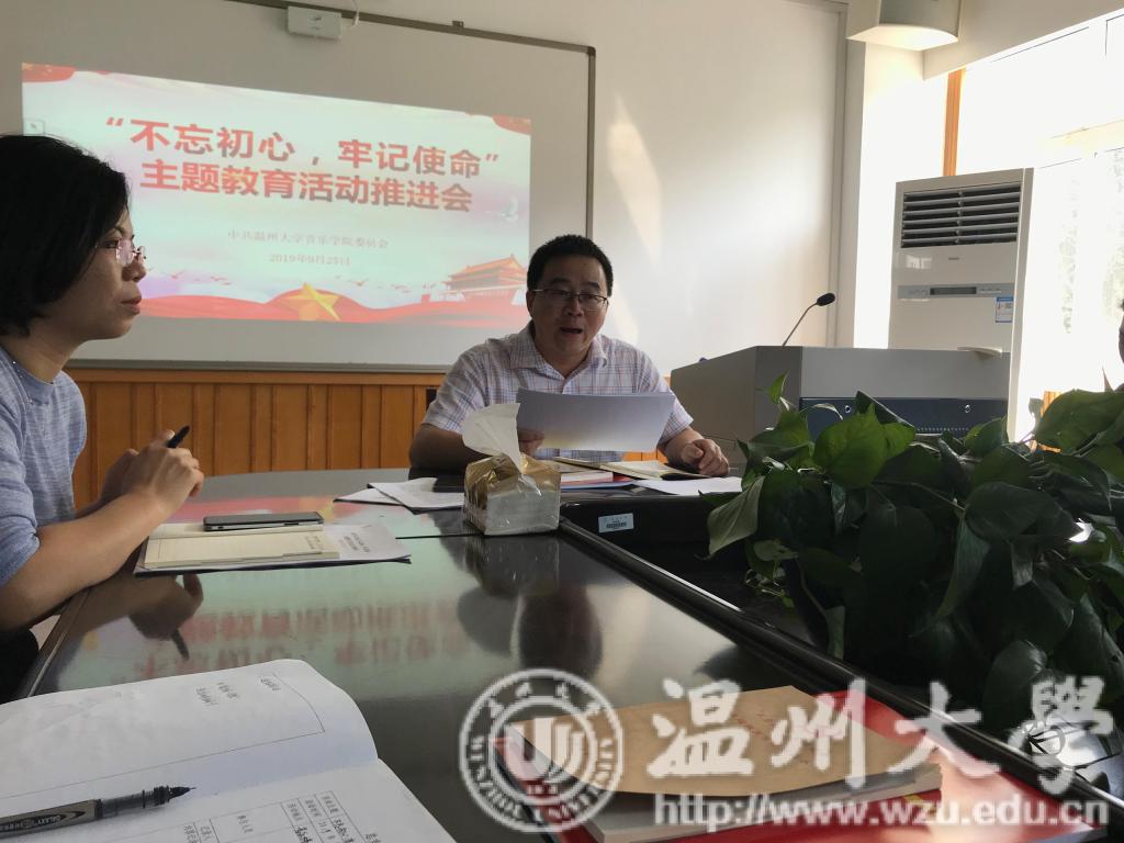 党委在音乐楼203会议室召开“不忘初心、牢记使命”主题教育工作推进会。全体教工党员、学生党员出席会议。会议由时时彩