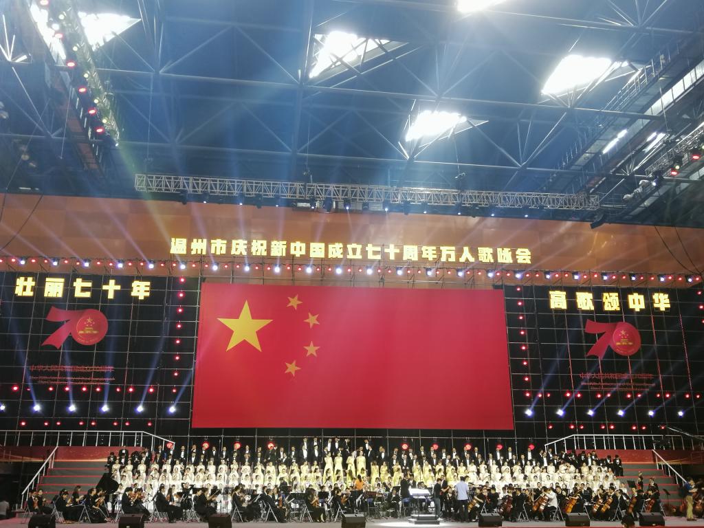 十余名教师及60余名学生以万人歌咏会为祖国倾情献唱。