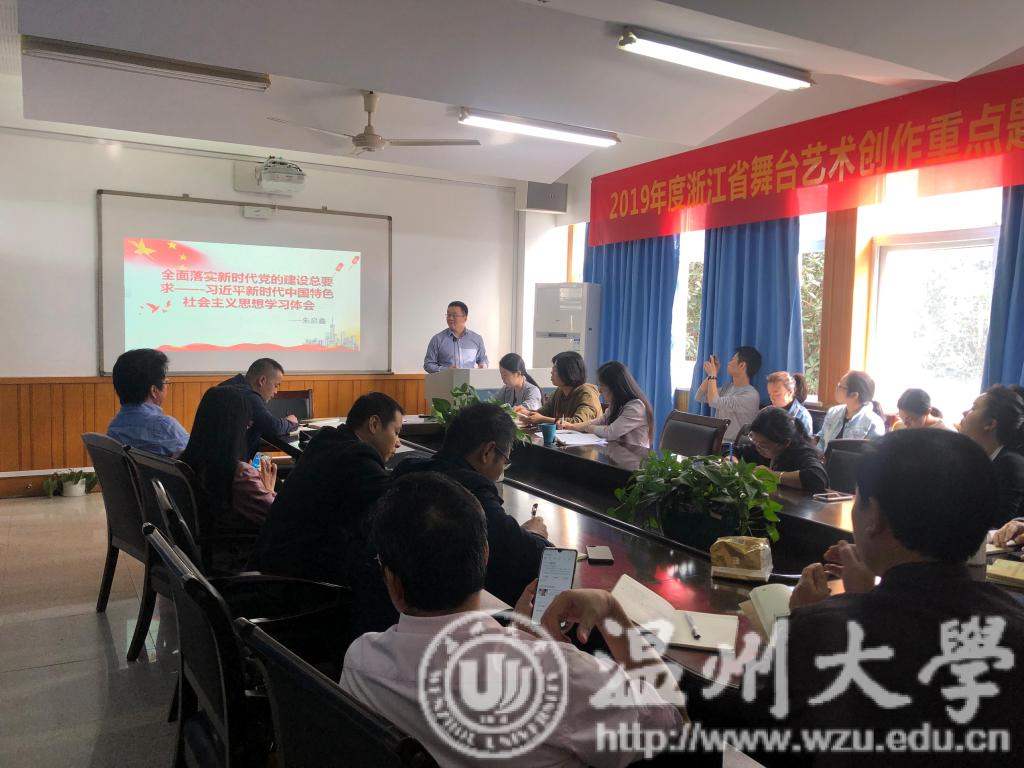 教工第二党支部书记柏互玖带头学习习近平总书记在文艺工作座谈会上的讲话,以《新时代中国特色社会主义文艺的行动纲领:习近平文艺座谈会讲话精神的时代意义》为主题,从实现中华民族伟大复兴需要中华文化繁荣昌盛、创作无愧于时代的优秀作品、坚持以人民为中心的创作导向、中国精神是社会主义文艺的灵魂以及加强和改进党对文艺工作的领导五个方面展开探讨学习。随后,由本研联合学生党支部书记林海红带领全体党员深入学习了三门县城西村八任书记一任接着一任干先进事迹。