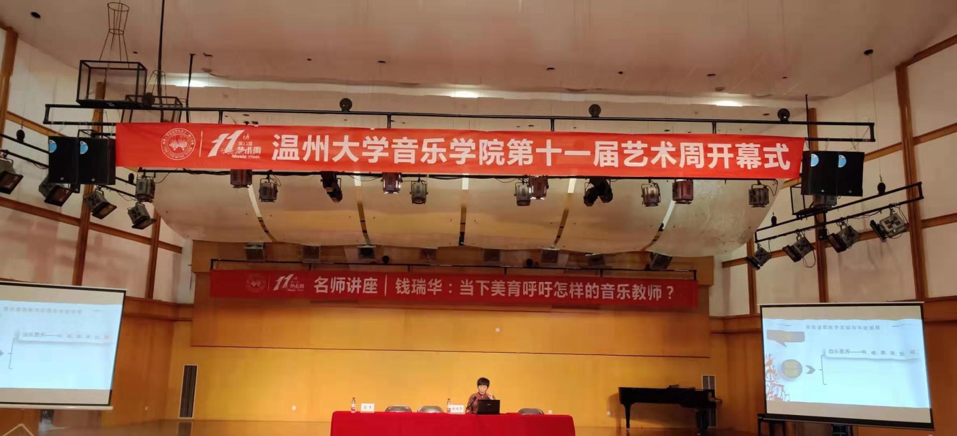 艺术周以钱瑞华讲师为大家开堂讲座作为开场——"当下美育呼吁怎样的音乐教师?" 钱瑞华老师是温州市教育教学研究院音乐教研员,浙江省特级教师、温州市名师,中央时时彩
