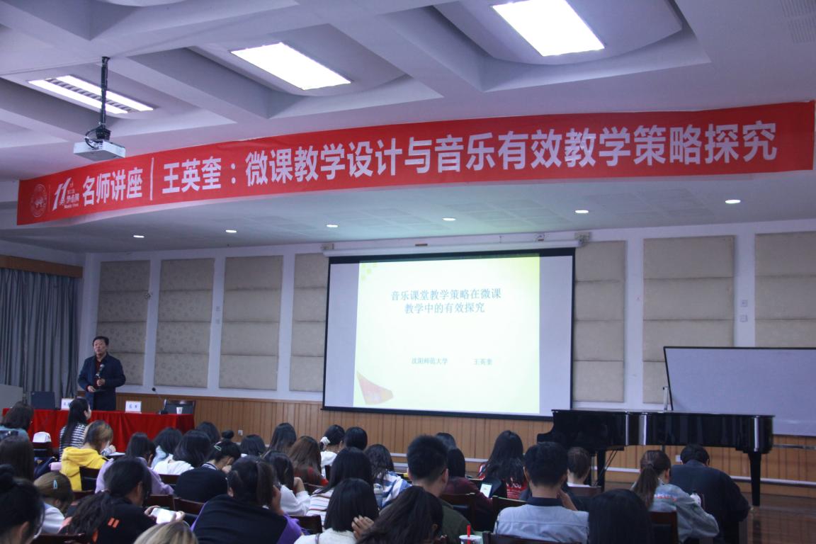 作为师范专业的学生,教学设计是我们必不可少的一项技能。而“微课教学”更是教学设计中的精华。为了让同学们对“微课教学”课题设计有一个具体、形象的了解,11月4日,沈阳师范大学王英奎老师的名师讲座“微课教学设计与音乐有效教学策略探究”于201报告厅展开。