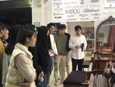 在展厅中同学们感受着不同时期、不同风格的钢琴