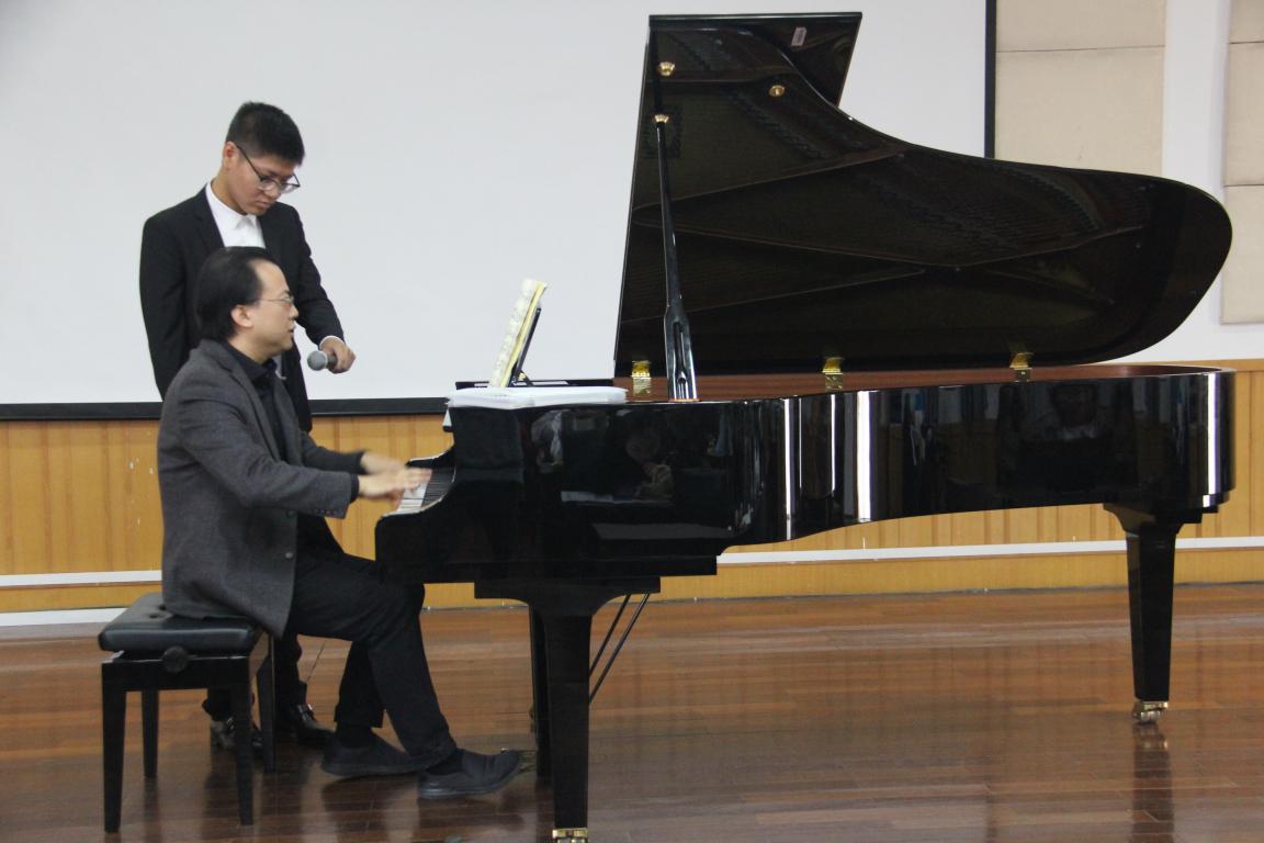 “钢琴演奏与文学”博士。曾多次在国际重要钢琴比赛中获奖,包括挪威格里格国际钢琴比赛银奖、美国芝加哥肖邦钢琴比赛第一名、威尔士国际钢琴比赛第二名等。并在欧、美、亚及中国国内各地进行音乐会演出、大师班等活动,与他合作演出过的著名指挥家包括美国克利夫兰交响乐团的Jahja Ling等。讲座开始,由时时彩