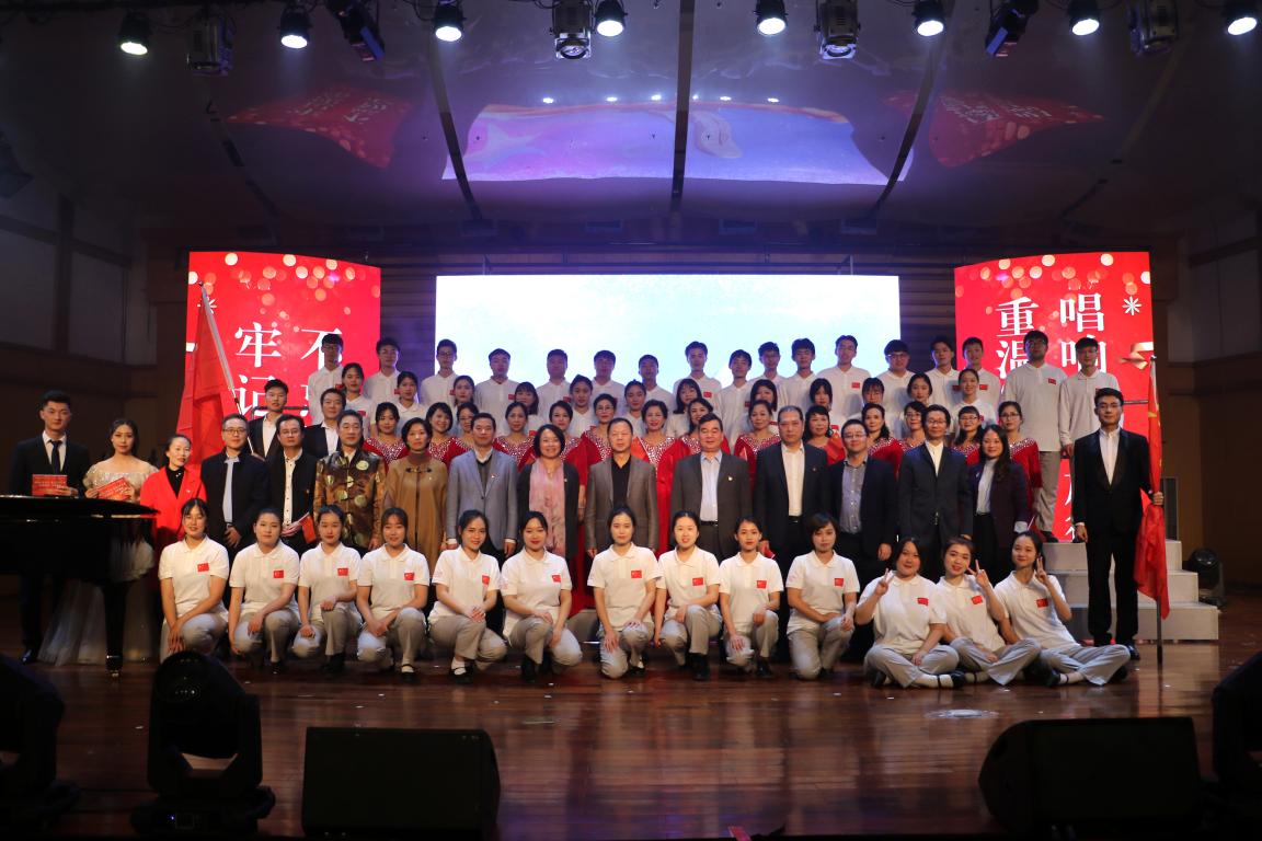 师生观看了整场晚会。音乐厅400多个位置,座无虚席。许多外国留学生也来观看演出,和中国同学一起挥舞着鲜艳的五星红旗。当演出结束时,全场观众与舞台上“鸿音传承”党员先锋服务团团员一起唱起了《我和我的祖国》。此时,台上是一杆鲜艳的五星红旗,台下是无数挥舞的五星红旗,整个音乐厅成了一片沸腾的海洋。爱国、爱党在这场晚会里,成为直抵人心的力量,激励鼓舞着每一位演员、每一位观众不忘初心、牢记使命、砥砺前行!