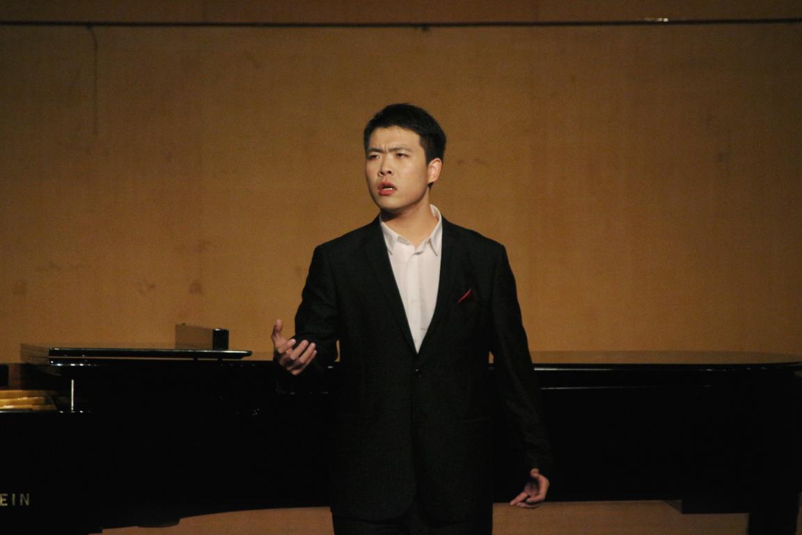 接下来的四首作品,又带我们领略了中国典雅之美。男中音独唱《大江东去》,刚柔并济、感时伤逝;女高音独唱《风萧瑟》,愿长相厮守,却无可奈何;钢琴独奏《山泉》,描绘了一股四季潺响、晶莹明澈的清流;男高音独唱《红豆词》,借红豆,衬相思,正所谓“相思相见知何日,此时此夜难为情。”