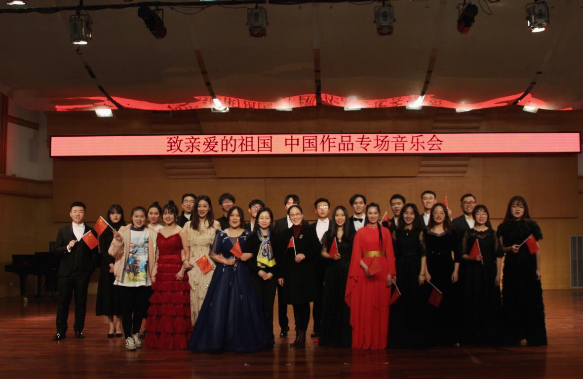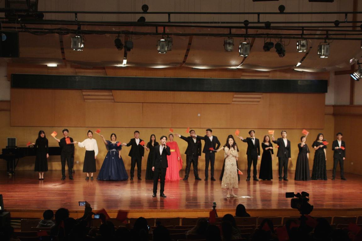 最后,以一首《我爱你中国》收尾,直抒胸臆,表达着所有演员以及老师们,对祖国的赞美以及美好祝福。在一片载懽载笑中,全体演职人员伴着歌声谢幕。至此,本次音乐会正式落下帷幕。本次“致亲爱的祖国——中国作品专场音乐会”在李杰鹏老师、王秀敏老师悉心指导,以及所有参与、关注本次音乐会的所有人员的共同努力下,成功举办!