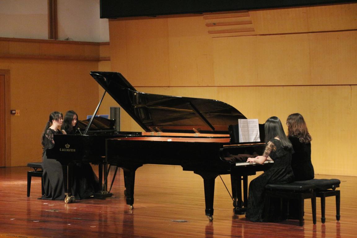 首先,以一首钢琴八手连弹《祝酒歌》作为开场曲,气势磅礴,一开场便将整场音乐会的氛围点燃。在观众们还沉寂在欢快的韵律中时,一首女中音独唱《月光恋》瞬间将大家从欢声笑语中,带入到深沉、凄美的思乡曲调之中。一扬一抑、跌宕起伏,十分扣人心弦。这之后的男高音独唱《故乡》与古典吉他独奏《月亮代表我的心》,更是饱含着对家乡以及心上人无比的思念。
