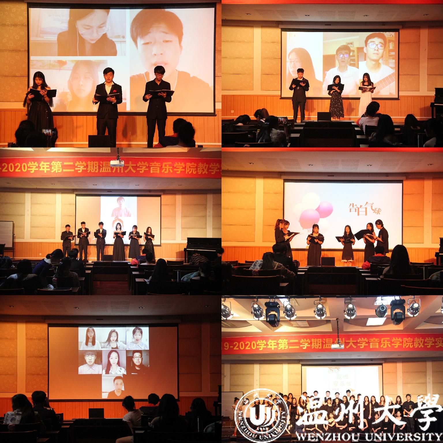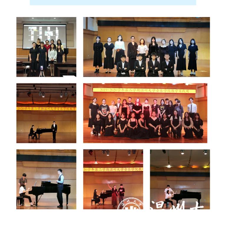 徐丽燕老师主讲《论“音乐要素”在小学音乐课堂教学中的重要性》,使学生能够了解温州中小学音乐教育最新动向。同时中小学音乐课堂线上观摩活动六场,李璋璋老师的《极致人生“阿卡贝拉”》、林亮亮老师的《粉墨人生》、周舒怡老师的《剧中之音》等。另外,还开展了短视频七天实训体验营活动。音乐会有四场:分别是讲演音乐会、室内乐音乐会(专场)、钢琴汇报音乐会、视唱音乐会等,其中,“视唱音乐会”别具一格,这是一场没有歌词的音乐会,看似简单,但为了这场音乐会,师生都进行了非常繁杂的排练和剪辑,最终为线上和线下的观众们呈现出一场精彩的视听盛宴。