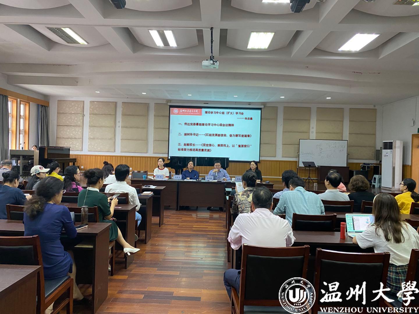 党委《关于学习贯彻全校教职工大会会议精神的通知》,院党委书记朱启鑫向全院教师传达了2020年暑期党委理论学习中心组(扩大)学习会精神,主要是学习校党委书记谢树华以及校长赵敏的重要讲话。