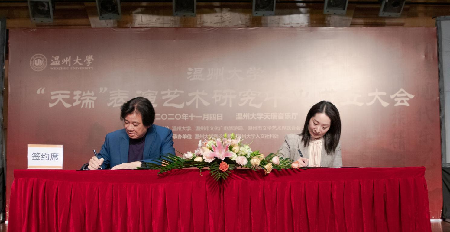 会上,“天瑞”表演艺术研究中心主任邹跃飞与温州市文化馆馆长施丽君签署了合作协议,双方将开启“文化驿站——名师讲堂”活动。以此为起点,“天瑞”表演艺术研究中心定会在温州社会经济文化发展中大放异彩,从发扬温州文化艺术做起,让光耀时代、光耀世界的中化文化、中国文化焕发时代光芒,让时时彩