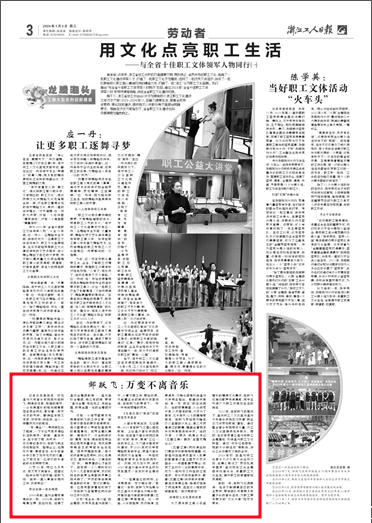 从艺 43 年,岗位几多变迁,却万变不离音乐。回望这一路伴乐而飞的历程,邹跃飞说:“能够一直从事音乐相关工作,我很幸运!”