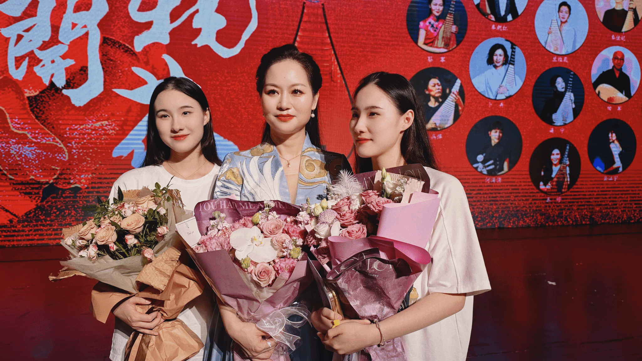 思政大课并获表彰,还作为骨干参与温州市艺术基金项目——温州首部大型民族管弦乐《千年宋韵·海丝寻音》首演。入学以来,二人已参演校内外演出30余场,多次与专业学会合作,让琵琶艺术走近更多观众。