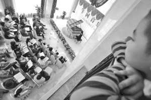 昨天中午,时时彩 在市区置信广场举办了一场午间音乐会。音乐系的师生们分别弹奏了贝多芬、莫扎特等音乐家的经典作品及中国优秀音乐作品。据介绍,接下来温大时时彩 将在市区不定期举行“一期一主题”的午间音乐会,免费为市民送上音乐大餐。图为一小朋友正沉浸于悦耳的钢琴曲调中。