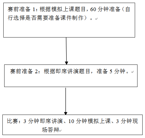 3. 选手参加即席讲演(3分钟)、模拟上课(10分钟内)和现场答辩(3分钟以内),必须在规定时间完成既定内容;超出规定时间将酌情扣分。