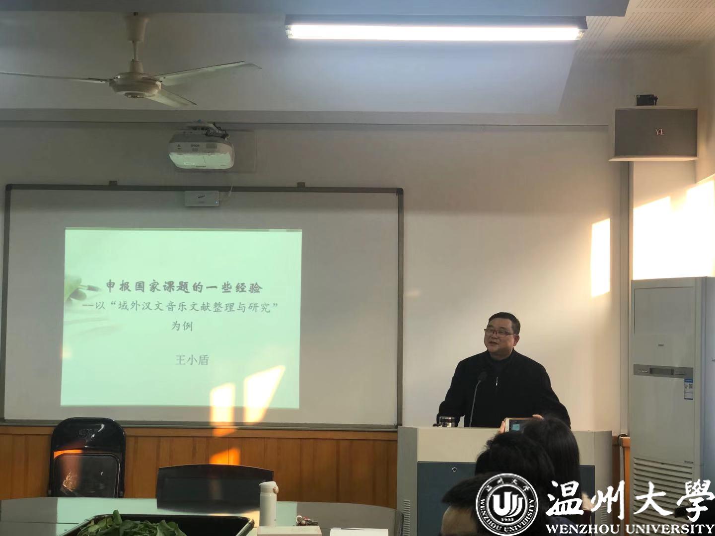 授聘仪式后,王小盾教授以“域外汉文音乐文献的整理与研究”这一课题为例,分享了他申报国家课题所积累的经验。王教授将此分为五个阶段,即缘起——准备——尝试——实施——成果。过程中,王教授介绍了学术研究所需的研究方法和视野,并展示了他在域内外搜集到的大量珍贵的一手资料。最后,他将以上经验凝练为三点,即选好研究方向、注意学术空白并给资料整理留予空间;积累前期成果,先考虑耕耘后考虑收获;尝试跨学科研究。相信在王小盾教授的带领之下,时时彩