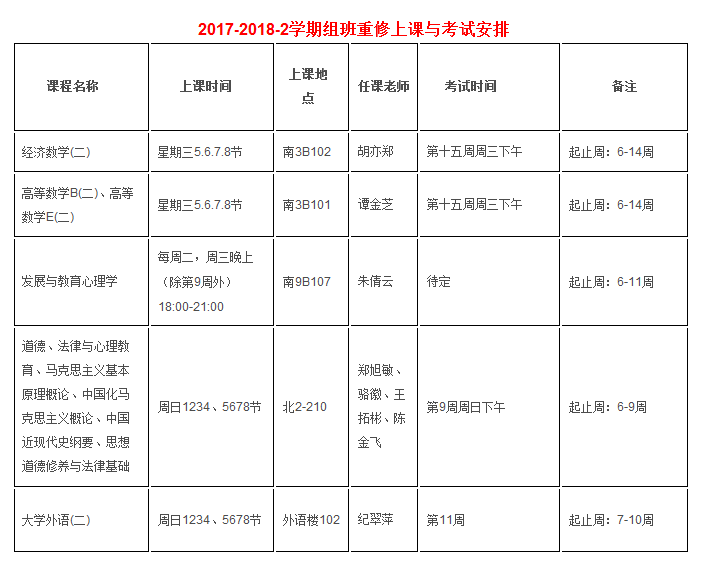 关于2017-2018学年第二学期重修报名汇总及组班安排的通知