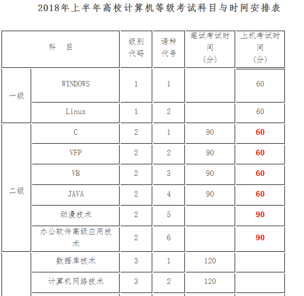 (一)理论考试:2018年4月21日。二级:9:00—10:30;三级:9:00—11:00。