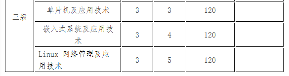 (六)三级:实行理论笔试,时间为120分钟。共有数据库技术、计算机网络技术、单片机及应用技术、嵌入式系统及应用技术、Linux网络管理及应用技术五个考种。