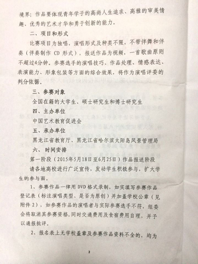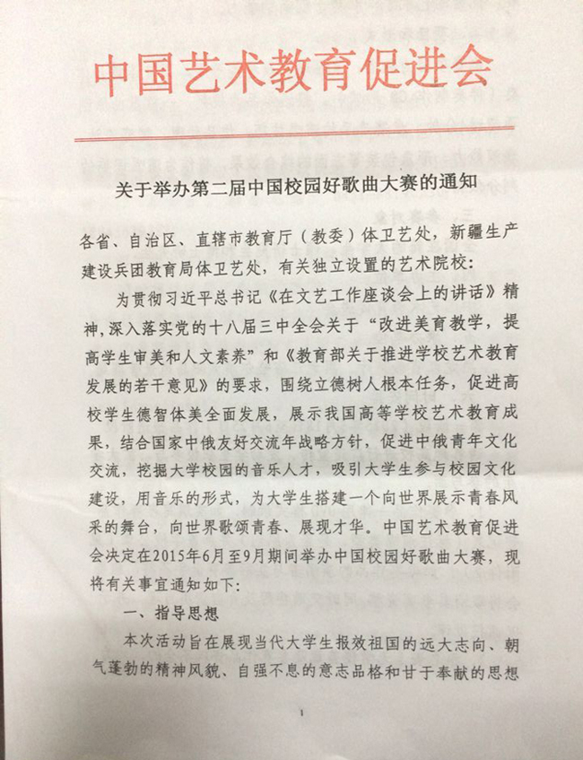 关于举办第二届中国校园好歌曲大赛的通知