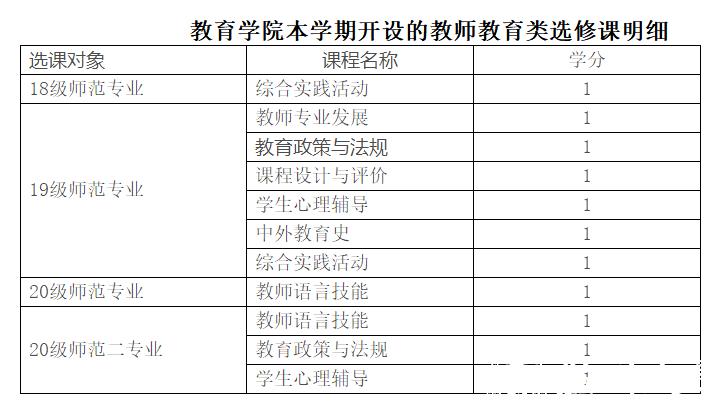 面向全校师范专业统一选课开设及学生所在时时彩