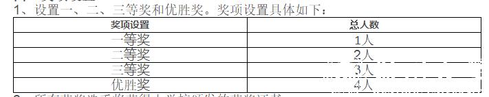 5、竞赛方式:选手赛前抽签决定参赛顺序,依次进行已备演讲,时间为3分钟(正负15秒),不足时间或超时将酌情扣分。