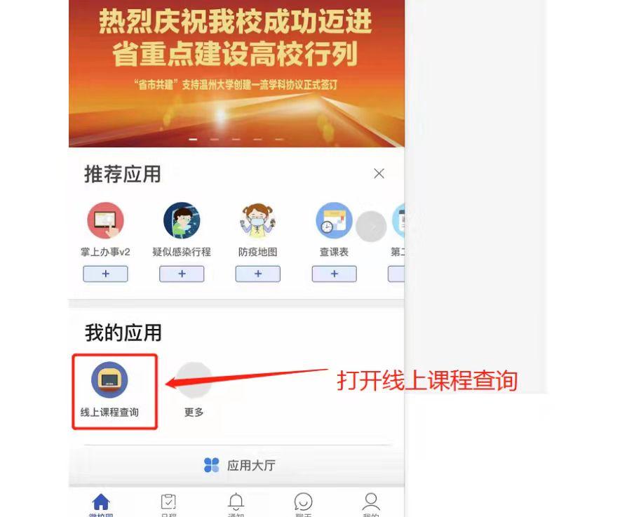 快来“我的温大”APP“体验“线上课程查询”吧