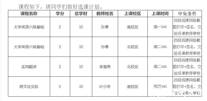 1.以雅思、托福等其他条件申免大学外语(二),需提交成绩单复印件与个人签名,交给任课教师审核。