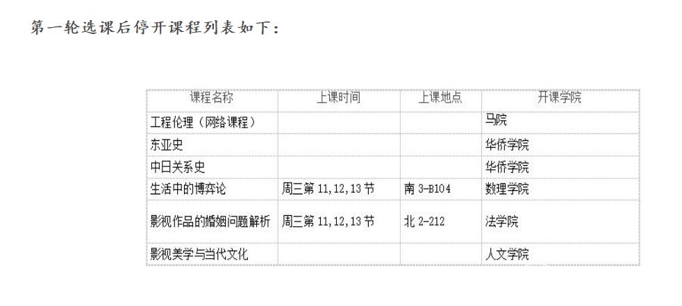 7. 第二轮选课结束后,不足30人的课程将不开课(除特殊有要求的课程外)。