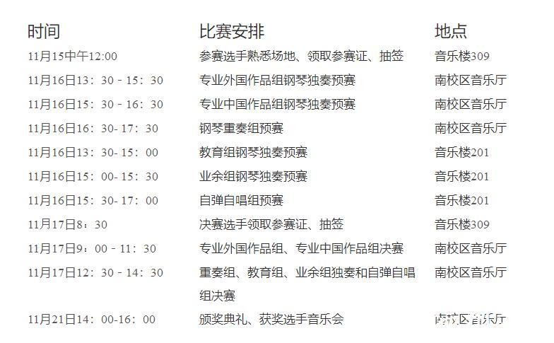 第十二届大学生钢琴比赛,现将有关事项通知如下:
