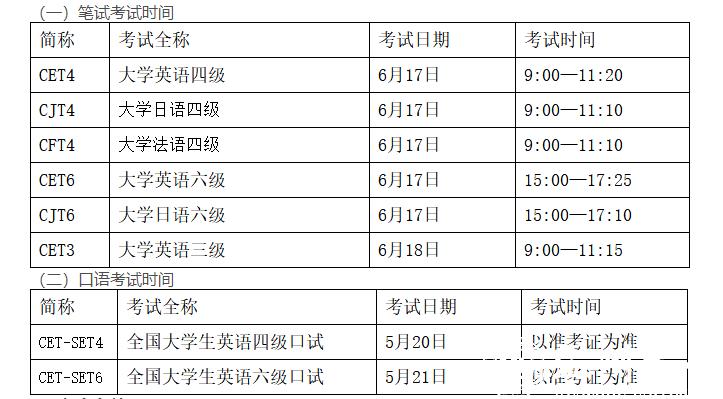 1.大学外语三级、四、六级:4月27日13:00——5月8日17:00