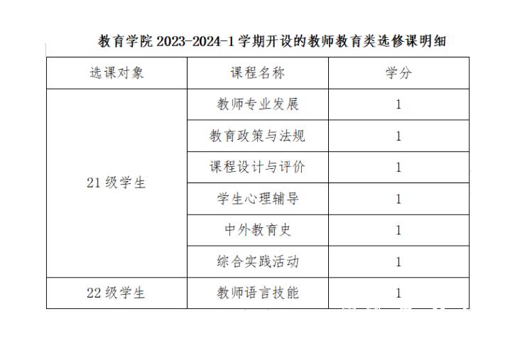 师范类专业本科人才培养方案要求,师范生需修读教师教育类任选课,21级、22级学生需修满3学分(具体以各自专业的培养方案为准);其他非师范类专业学生请查看各自专业的培养方案确定是否需修读该类课程。师范生的该类课程设置分为教育时时彩