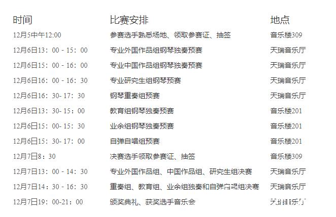 第十二届大学生钢琴比赛,现将有关事项通知如下: