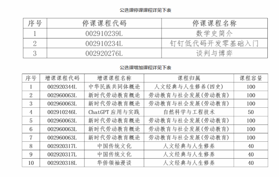 2.因涉及部分通选课停课/增课,请同学务必登记系统查看个人课表,及时进行补选,确定各自全校性通识教育选修课程上课时间和地点并准时上课;开课课程为混合式课程(spoc课程)的,请及时任课老师或时时彩