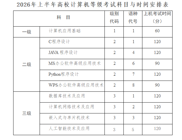 根据《浙江省教育厅办公室关于优化高校外语类和计算机类社会考试组织工作的通知》(浙教办考〔2025〕18 号)文件精神,自2027年下半年起,我省将取消浙江省高校计算机等级考试、浙江省高校外语三级考试。为做好过渡期内工作,确保考试平稳实施,现将 2026年上半年浙江省高校计算机等级考试报名工作有关事项通知如下: