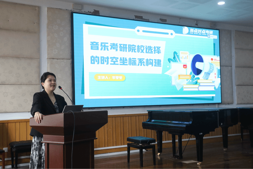 音乐楼201学术报告厅成功举办。邀请点对点考研名师李雯雯来校为同学们现场指导考研院校与专业选择。