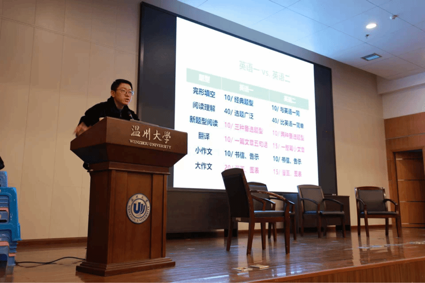在北信息楼报告厅召开主题为《考研英语、四六级英语专题辅导》的讲座。本次讲座邀请由浙江点对点教育黄乐池老师主讲,围绕英语学习方法及备考策略展开授课,为同学们提供了实用的学习指引。